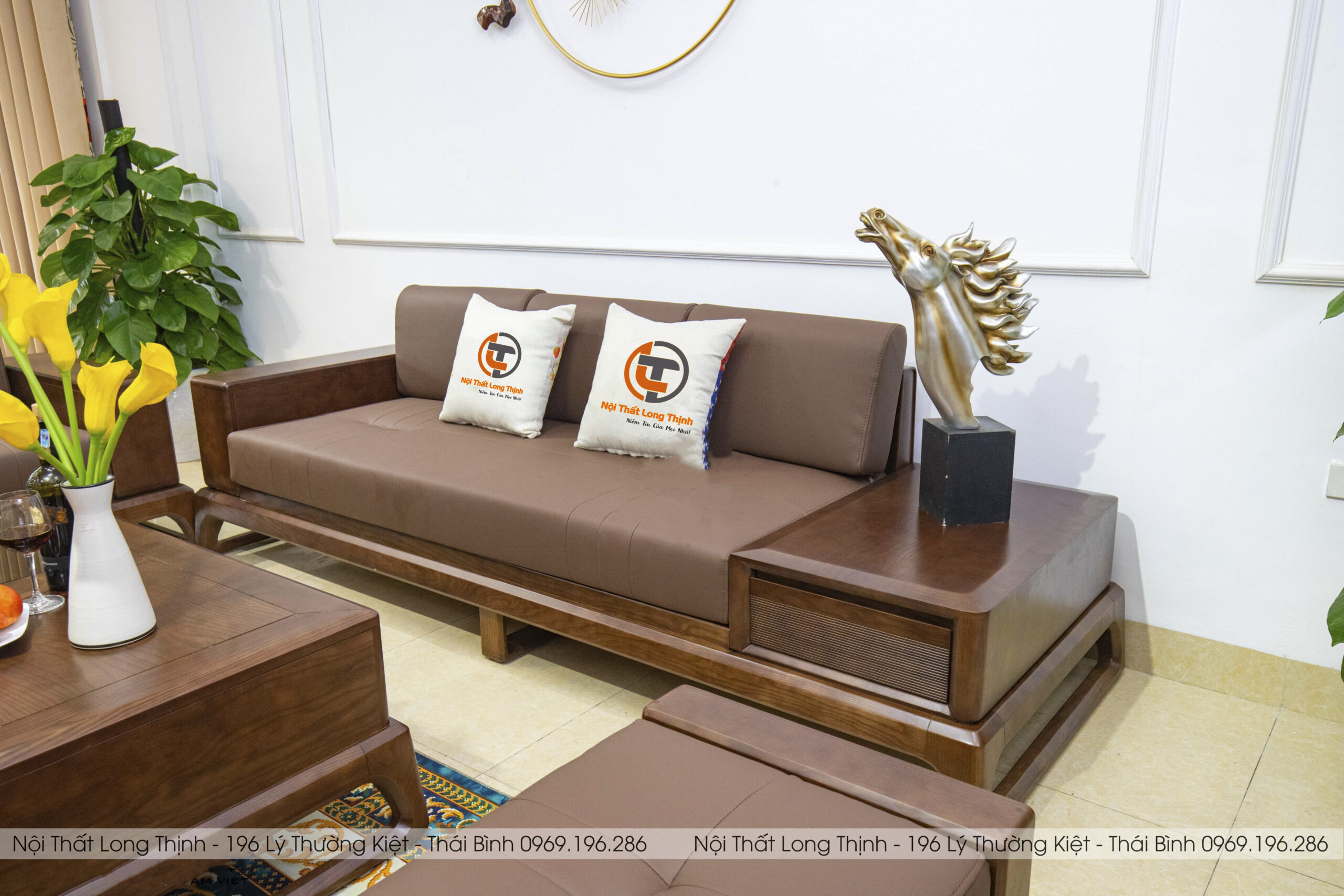 Nội thất Long Thịnh luôn cập nhật những xu hướng đang được ưa chuộng về cả màu sắc lẫn kiểu dáng trên thị trường nội thất với mục đích mang đến trải nghiệm đẳng cấp và thư giãn tối đa cho quý khách. Bộ sofa gỗ sồi là sự biểu tượng cho nét đẹp tinh tế và sang trọng với tone màu nâu sẫm tạo nên điểm nhấn thu hút cho không gian phòng khách gia chủ.
